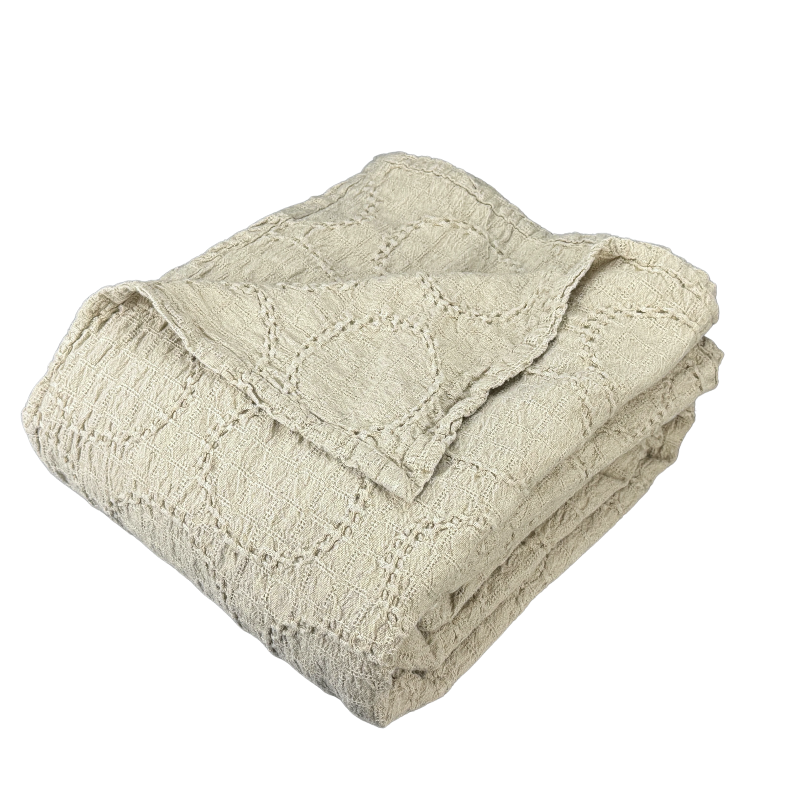 Koc Lniany GOBEKLI TEPE – Hybrydowa struktura żakardu i dzianiny