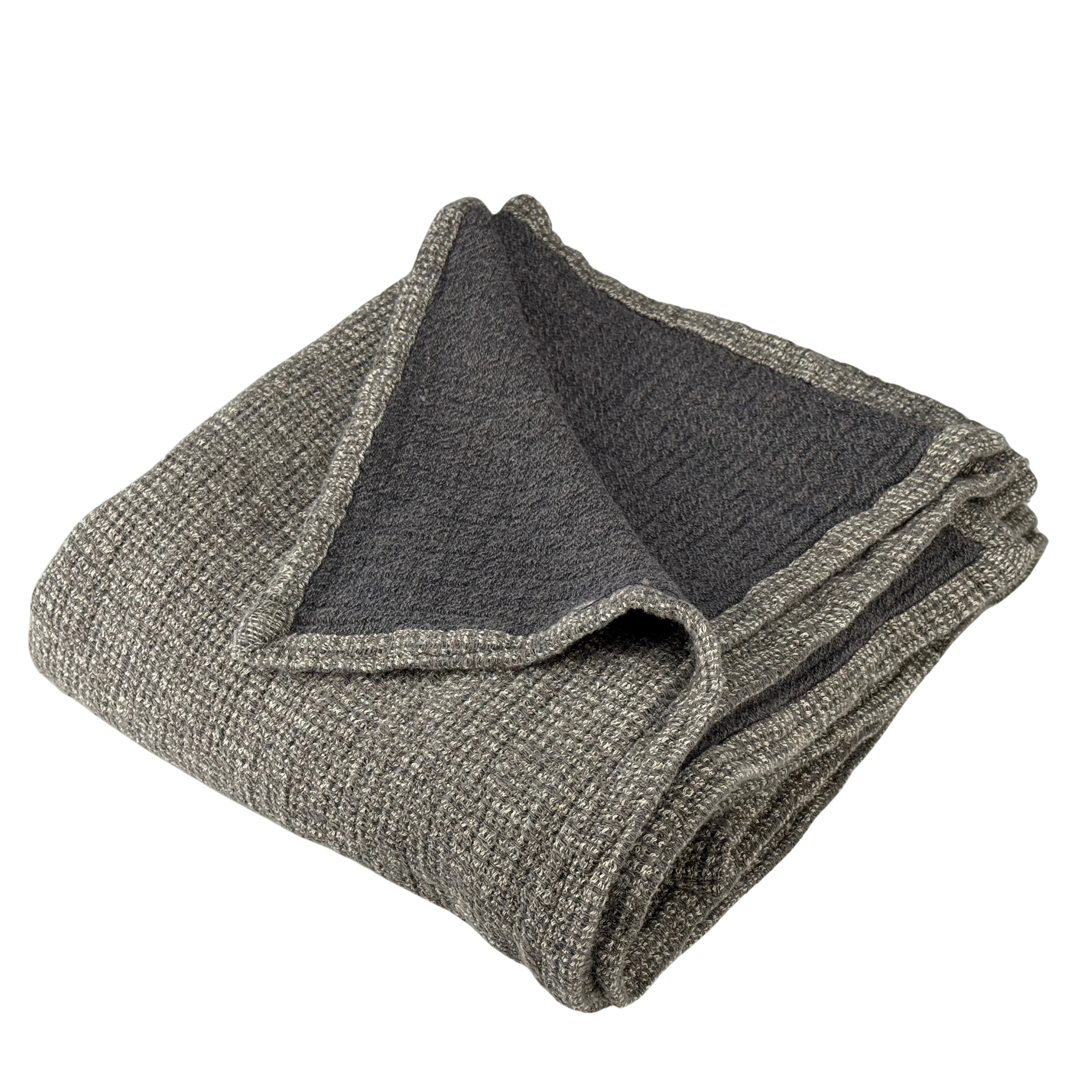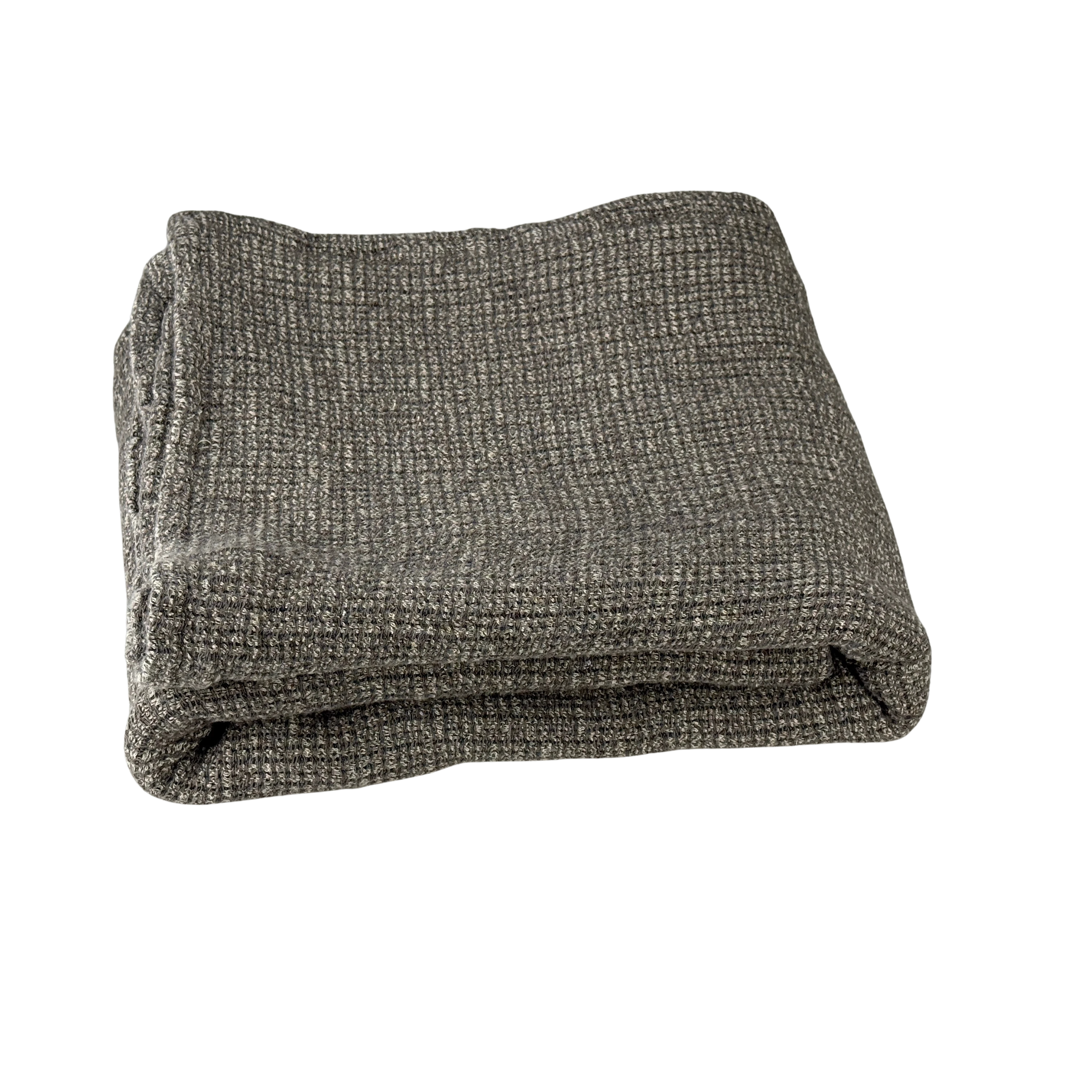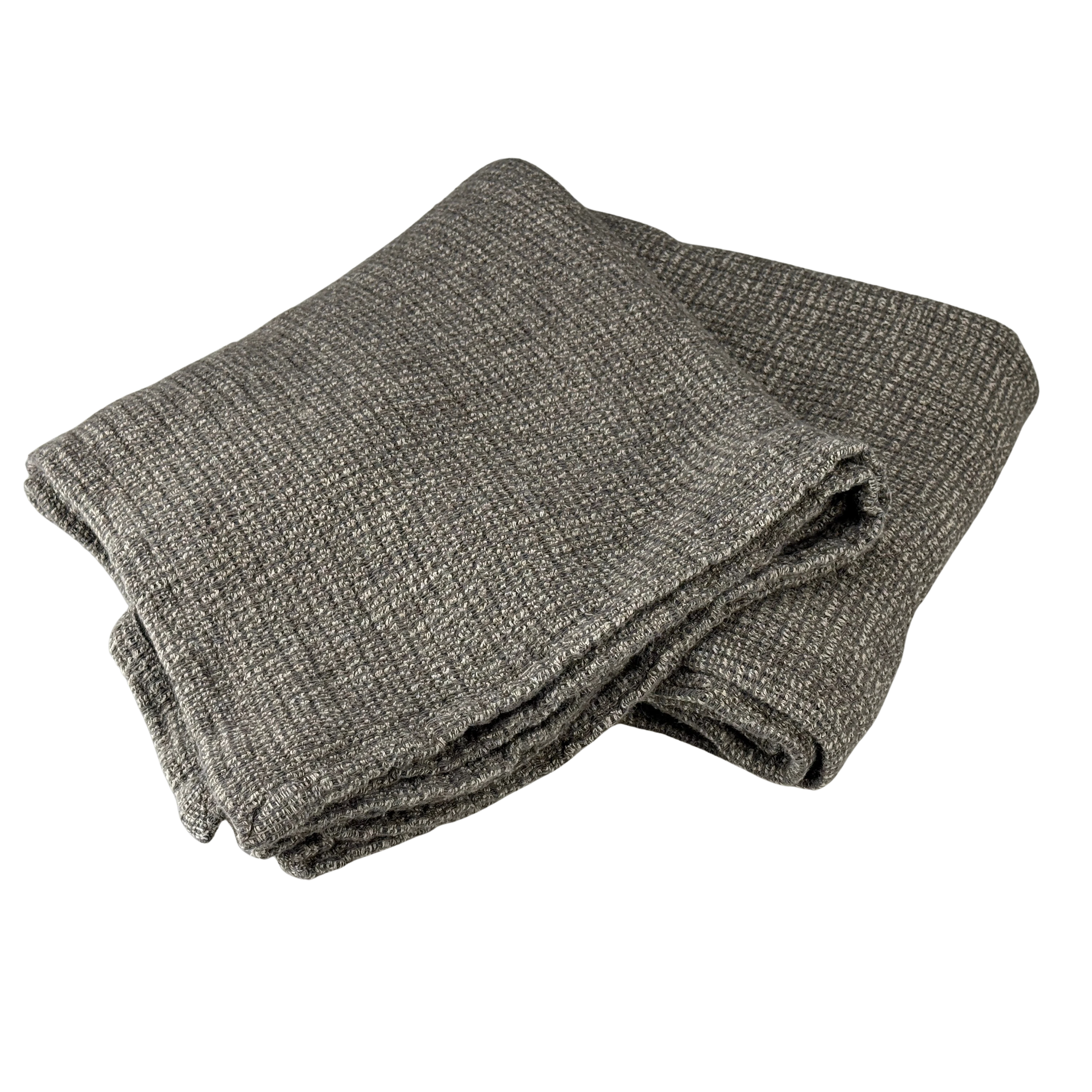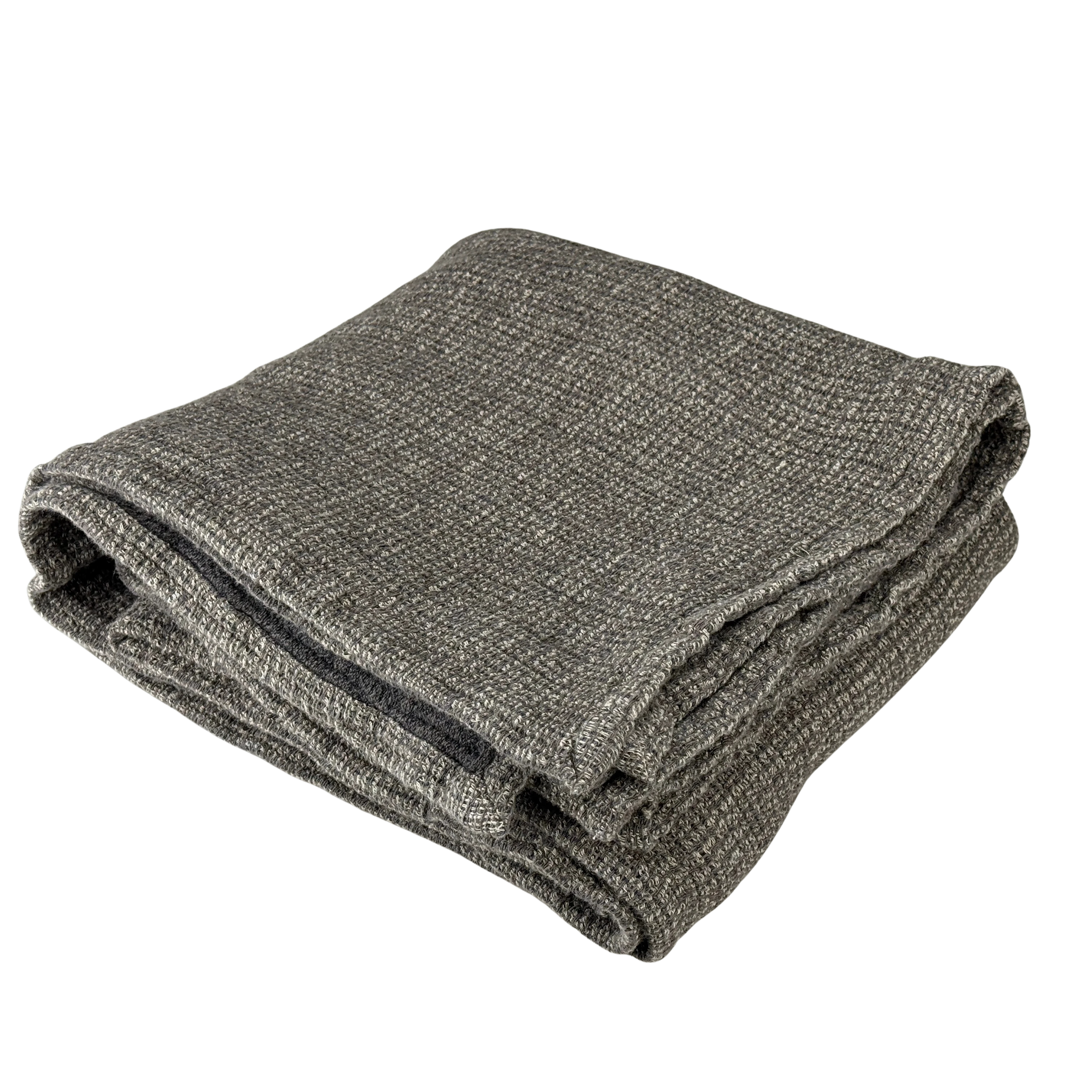 Koc Lniany Grey Rock – Grafitowy żakard o strukturze dzianiny