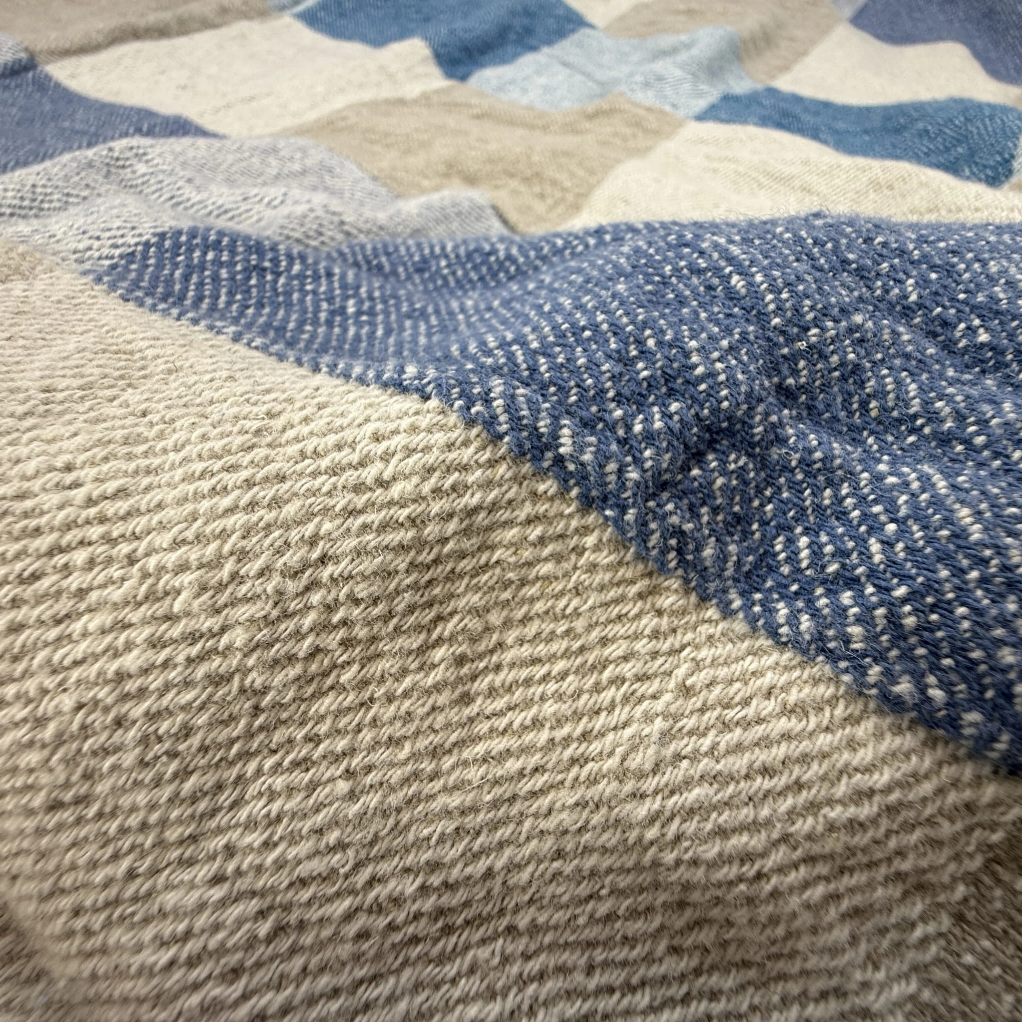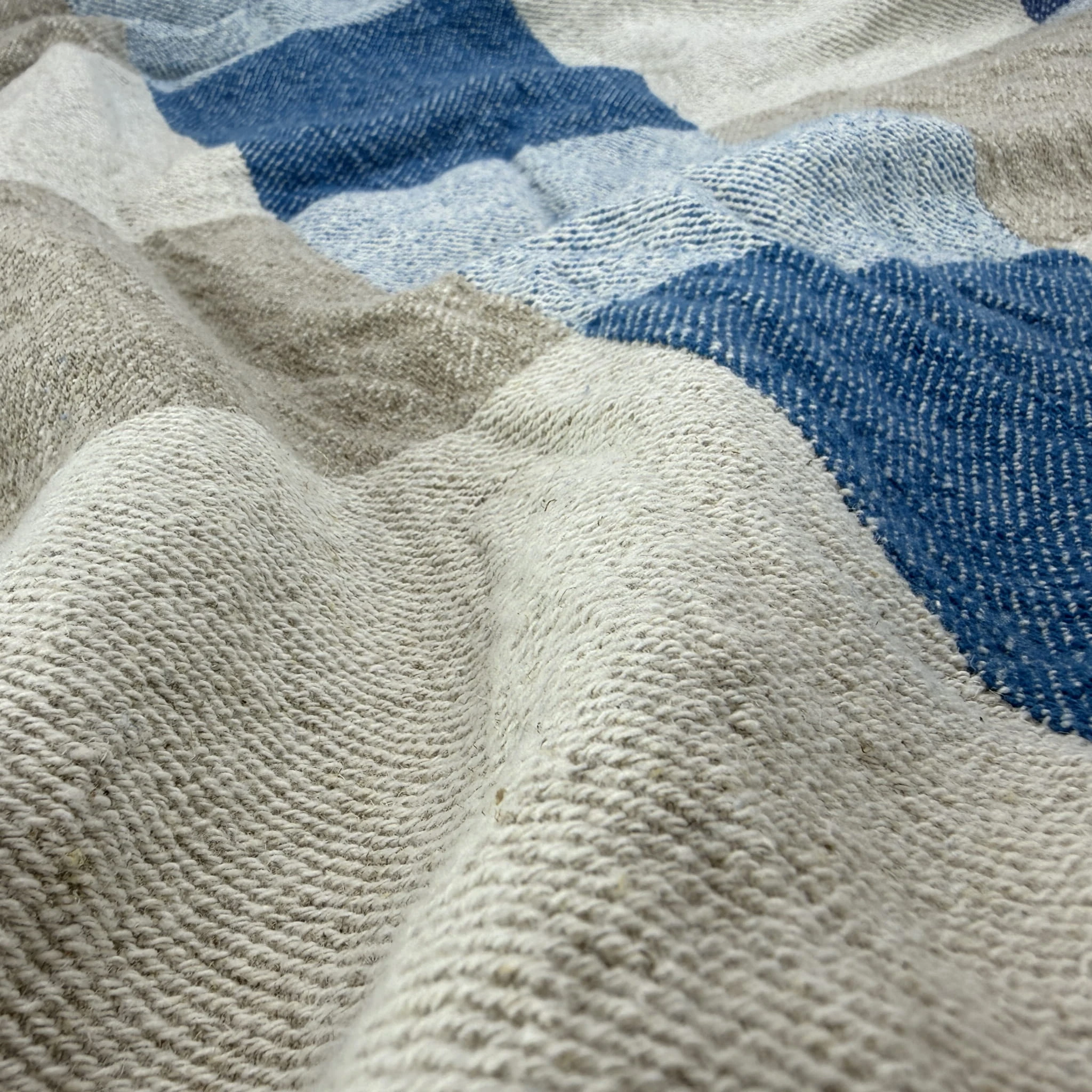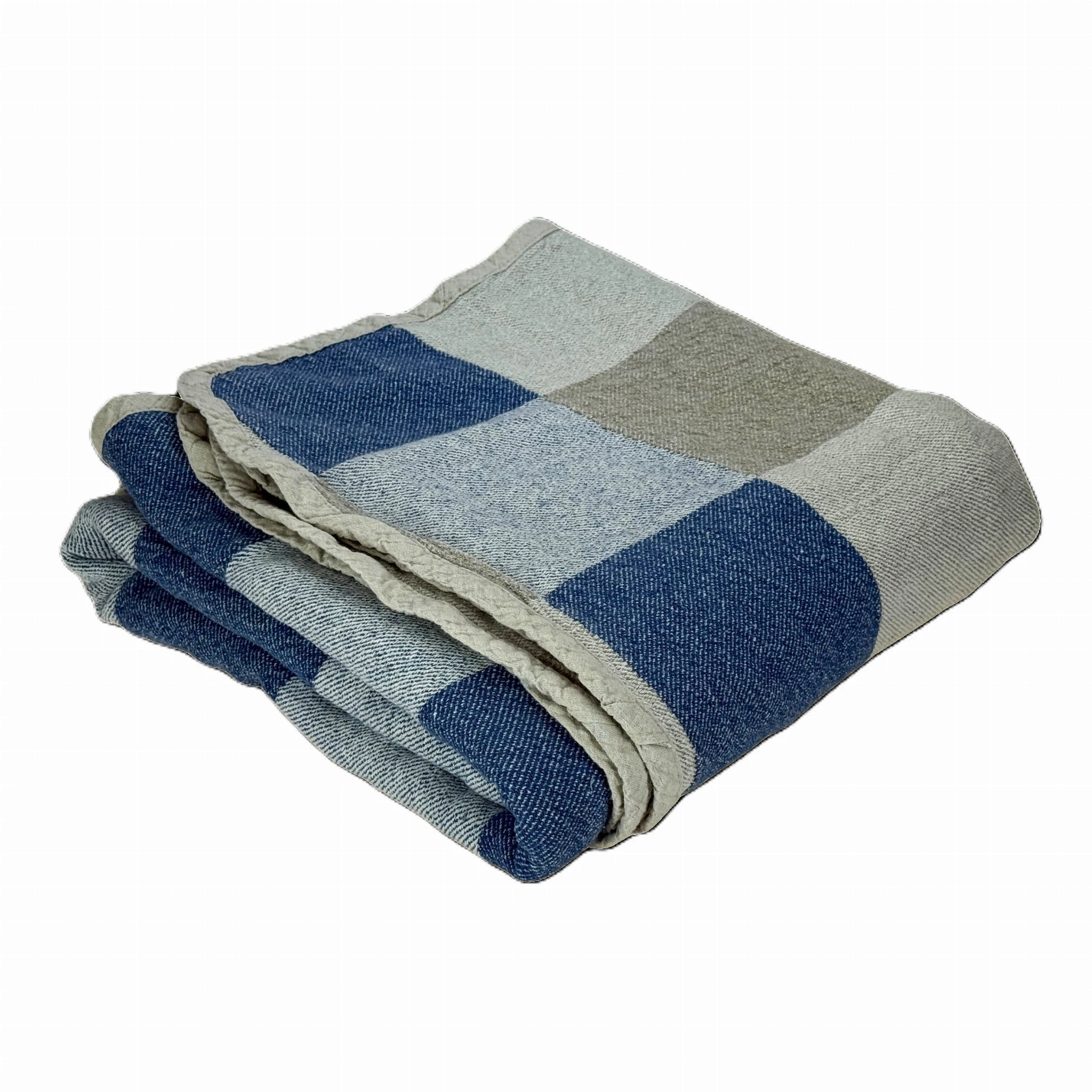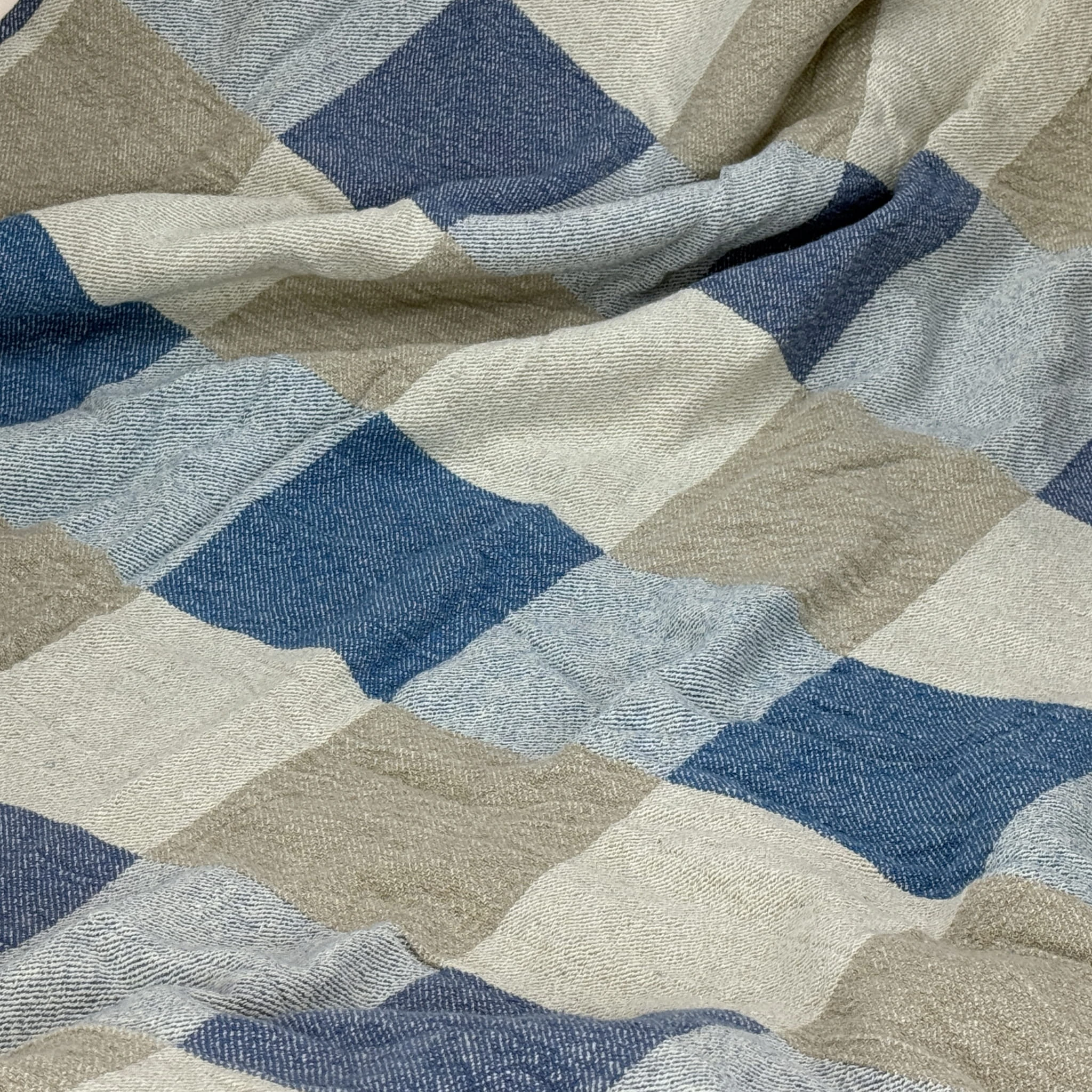 Prasowanie: Nordic Azure najpiękniej wygląda w swojej naturalnej strukturze „stonewashed”. Jeśli jednak potrzebujesz gładkiego wykończenia, prasuj koc w wysokiej temperaturze, gdy tkanina jest jeszcze wilgotna.