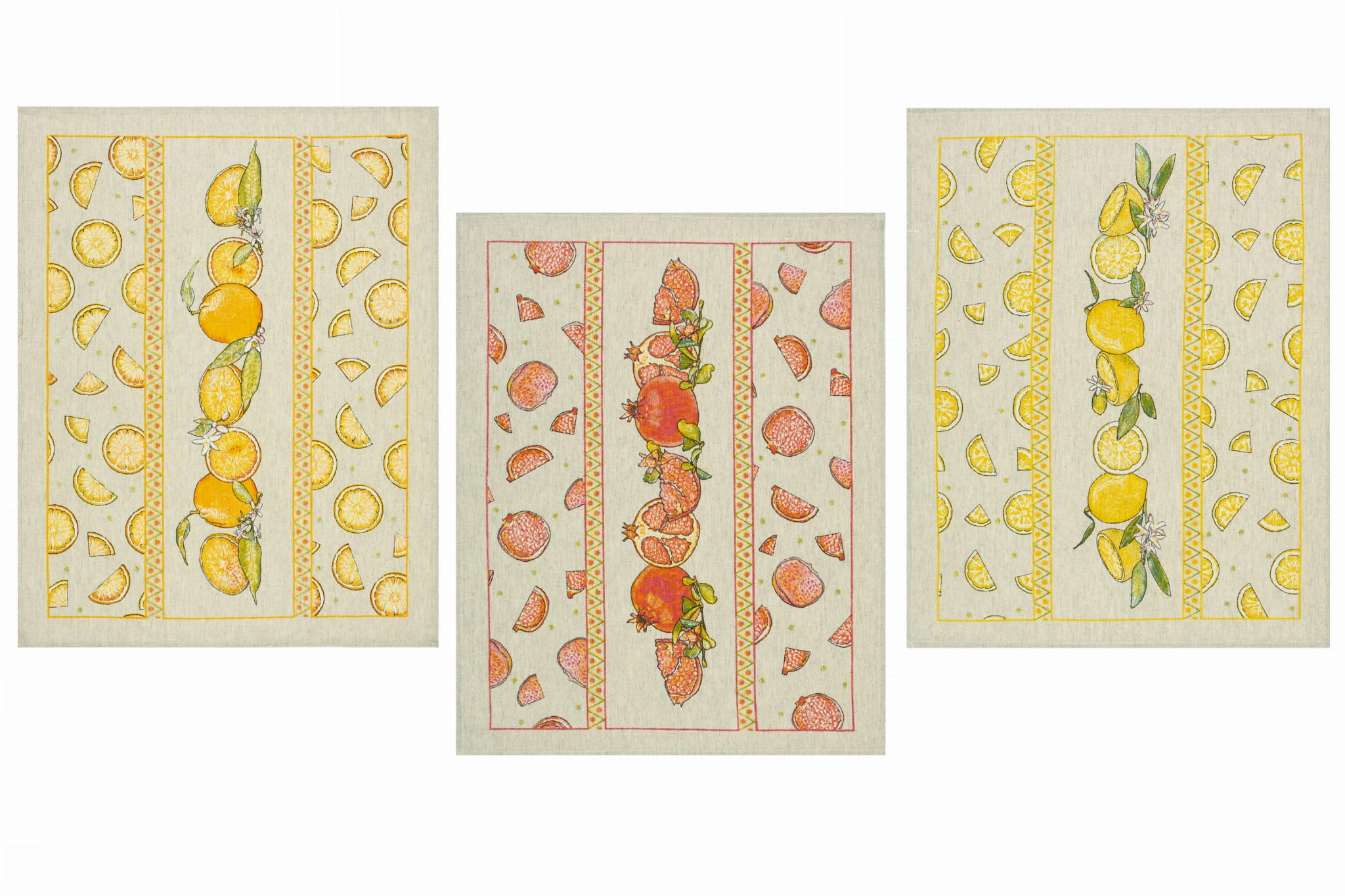 Ścierka Kuchenna Cytryny i Granaty kpl.3 szt. 46 x 60 cm Len 53% Baw 47%