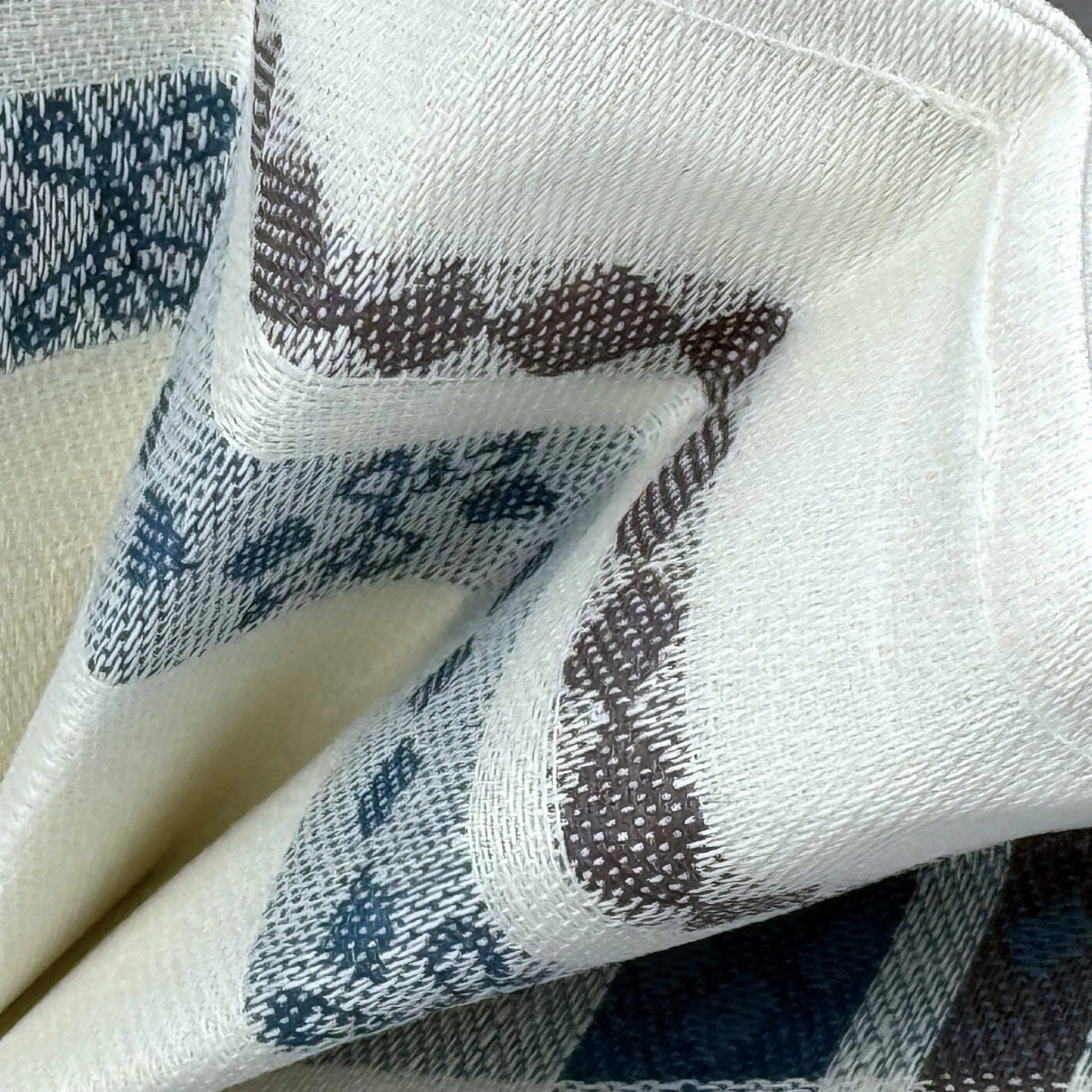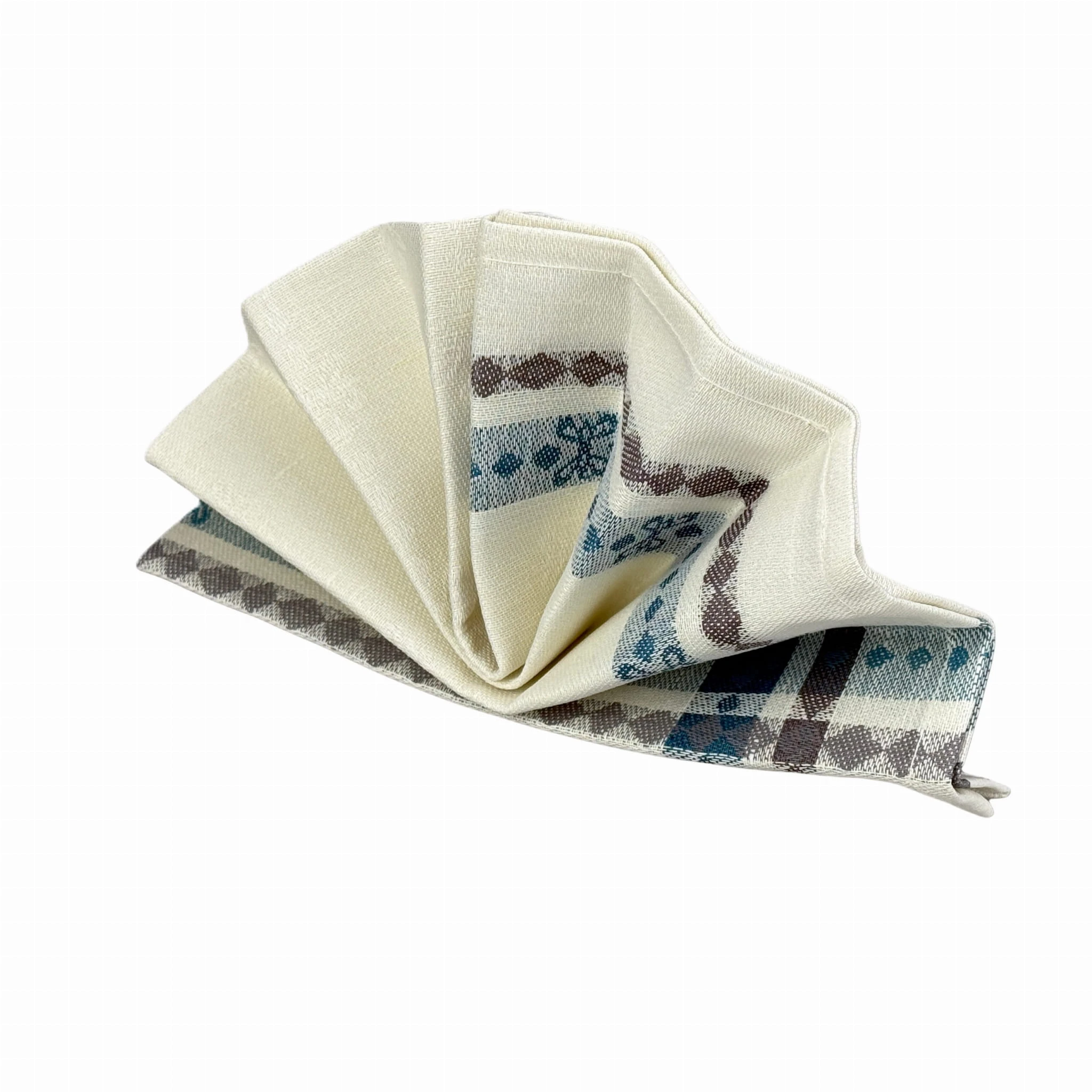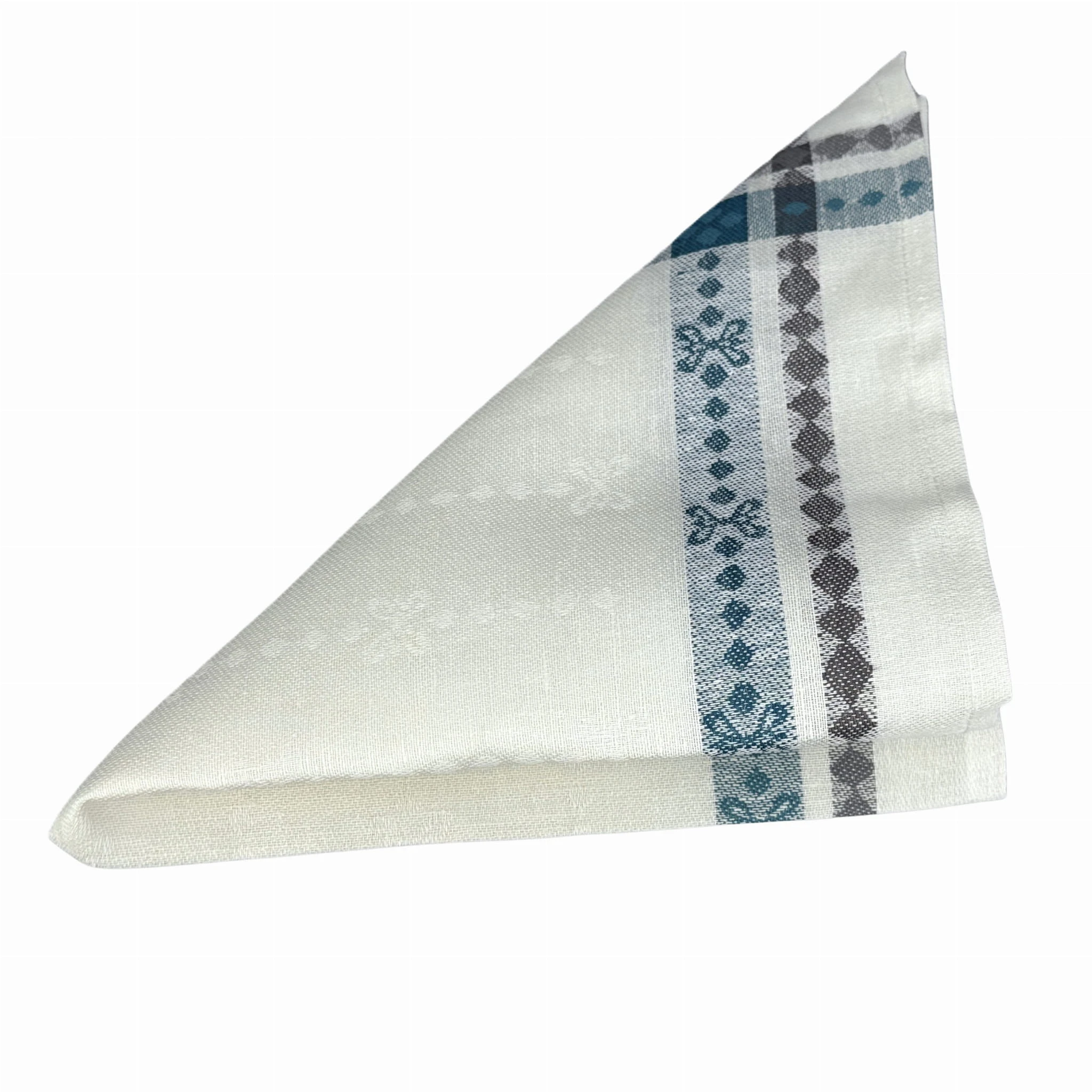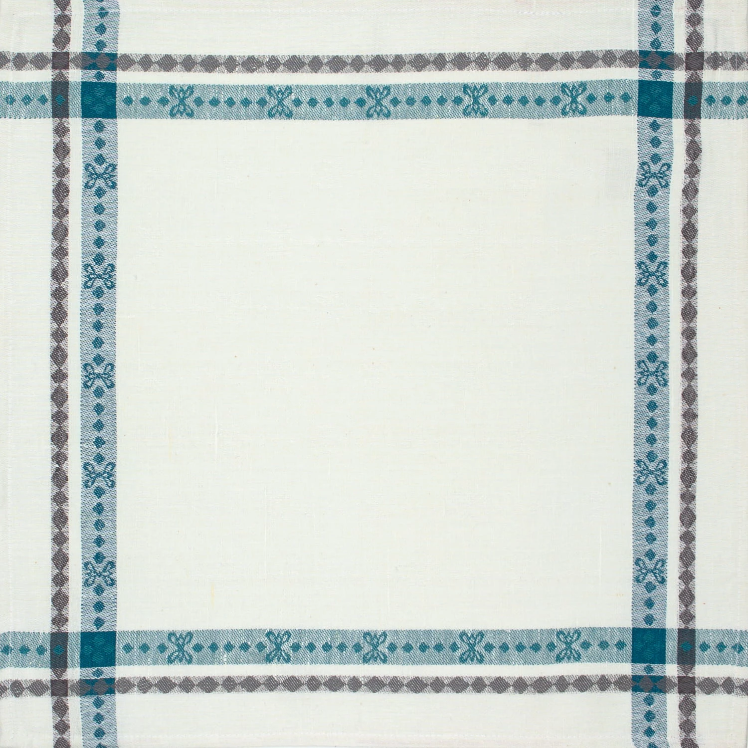 Duża Serwetka Obiadowa Modern Rustic – Biała z Turkusowo-Brązowym Ornamentem Żakardowym